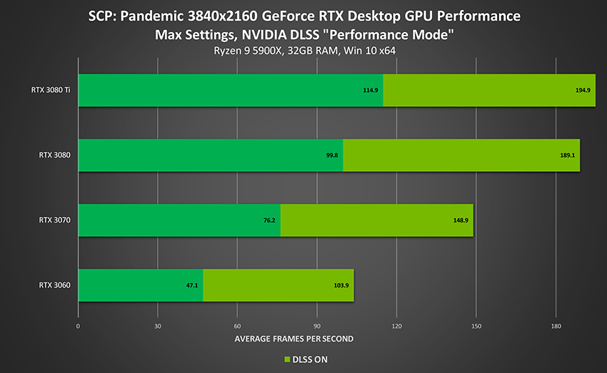 Activating NVIDIA DLSS in SCP: Pandemic sends frame rates to the stratosphere, jumping past upwards to 90% at 4K, enabling all GeForce RTX gamers to play at over 100 FPS: